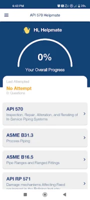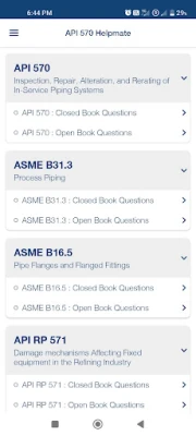 Je, unajitayarisha kwa mtihani wa uthibitisho wa API 570 na unatafuta njia bora ya kujifunza? Programu ya **API 570 Helpmate** imebuniwa kukupa uwezo wa kusoma kwa ujasiri, popote ulipo na wakati wowote unaofaa. Imeundwa mahsusi kuwasaidia wahandisi, wanafunzi wa uhandisi, wabunifu, wakaguzi na wale wanaoanza kujifunza kanuni na viwango muhimu vinavyotumika katika sekta ya petroli na petrokemikali bila vikwazo vyovyote.