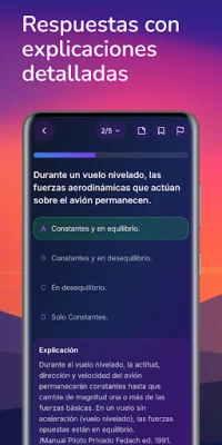 AVI inakuletea mbinu mbalimbali za kujifunza zinazokidhi mahitaji yako. Tumia Hali ya Kujifunza kufanya mazoezi kulingana na kategoria, ukipata maswali na maelezo ya kina kwa kila jibu. Kwa wale wanaotaka kupima uelewa wao, Hali ya Mtihani inakuruhusu kuiga mtihani halisi wa DGAC, ukichagua kategoria, muda na idadi ya maswali. Na kwa ajili ya kujifunza kwa kasi na ufanisi, Hali ya Haraka itakufundisha kwa kubadilisha maswali kulingana na kiwango chako cha uelewa, ukipanda viwango vinne vya ustadi. Maudhui yote ndani ya AVI yanasasishwa mara kwa mara, yakizingatia kanuni za sasa za Idara Kuu ya Usafiri wa Anga (DGAC), kukuhakikishia taarifa sahihi na za kuaminika.