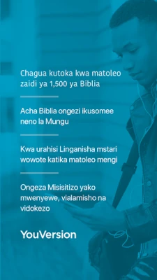 Biblia Takatifu, Swahili Bible ya YouVersion ni app bure inayokusaidia kukaa karibu na Neno la Mungu kila siku. Soma, sikiliza, na jifunze na marafiki, ukitumia vivinjari, alama, na madokezo. Chunguza matoleo 2,000 ya Biblia na uimarishe imani yako. Jenga tabia ya maombi na shiriki uvumbuzi wako.
