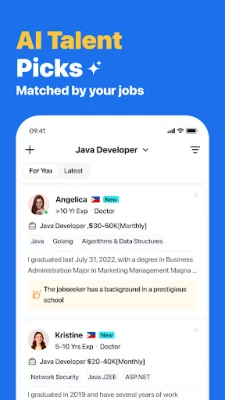 bossjob inaleta mapinduzi kazini kwa uzoefu wake mpya wa AI. Huhakikisha mawasiliano bora na ya papo kwa papo kati ya watafuta kazi na waajiri, ikiboresha uhusiano wao na kurahisisha mchakato wa ajira.