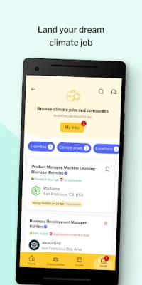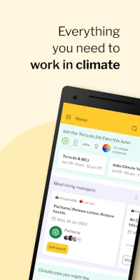 Terra.do inasimama kama nguzo kuu ya kimataifa, ikiendeshwa na azma ya kuunganisha watu milioni 100 na fursa za kazi zinazohusiana na mabadiliko ya hali ya hewa ifikapo mwaka 2030. Kupitia programu yetu ya simu, tunakuletea kituo kimoja chenye nguvu ambacho huleta pamoja nafasi za kazi za kimazingira, rasilimali za kujifunza, na jumuiya mahiri. Huu ndio mwanzo kamili kwa wataalamu wanaotamani kuwekeza ujuzi wao katika mustakabali endelevu. Terra.do imeundwa kukuhudumia popote ulipo, ikiwezesha safari yako ya kitaaluma katika masuala ya hali ya hewa kwa urahisi na ufanisi.