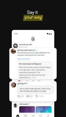 Udhibiti kamili wa uzoefu wako upo mikononi mwako. Badilisha mipangilio yako ili kudhibiti nani anaweza kuona maudhui yako, kujibu nyuzi zako, au kukutaja. Akaunti ulizozizuia Instagram zitasawazishwa kiotomatiki, na Meta inahakikisha miongozo ileile ya jamii inatumika kudumisha usalama na uhalisi wa mwingiliano wote kwenye Threads. Gundua msukumo na maarifa mapya; pata majibu kwa maswali yako, kuanzia mapendekezo ya filamu hadi ushauri wa kazi, kupitia mijadala ya pamoja na wataalamu. Usiwahi kukosa tukio muhimu au mtindo mpya, shukrani kwa arifa za papo hapo kutoka kwa akaunti unazozipenda zinapoanzisha nyuzi mpya. Zaidi ya hayo, Threads ni sehemu ya 'fediverse', mtandao huru wa kijamii unaokuunganisha na jumuiya pana zaidi.